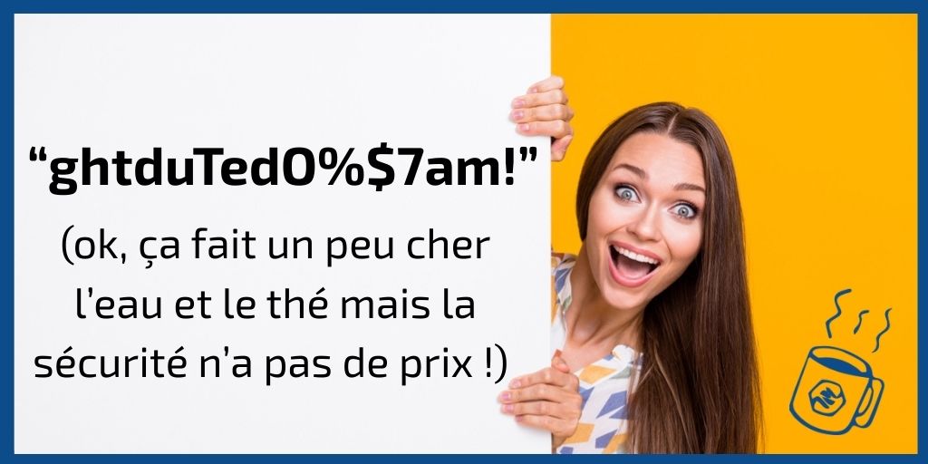 Le mot de passe est à votre sécurité informatique ce que la clé de votre appartement est à votre sécurité personnelle. Vous ne laisseriez pas votre porte ouverte ou n’accrocheriez pas votre clé à un clou devant la porte de votre domicile. Un mot de passe qui n’est pas sécurisé revient à l’une de ces deux alternatives… N’importe qui, sans effort ni compétence, sera en mesure d’entrer chez vous et voler toutes vos informations, données, ressources, biens, etc.